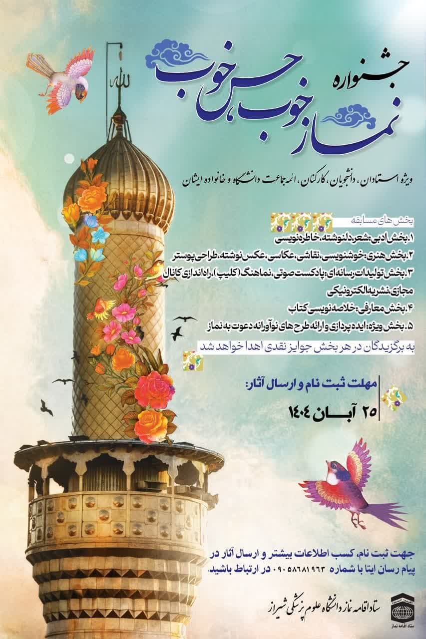 به منظور ترویج فرهنگ اقامه نماز و انعکاس تأثیرات عمیق معنوی آن در زندگی، جشنواره فرهنگی "نماز خوب، حس خوب" در آبان‌ماه ۱۴۰۴ در دانشگاه علوم پزشکی شیراز برگزار می‌شود.